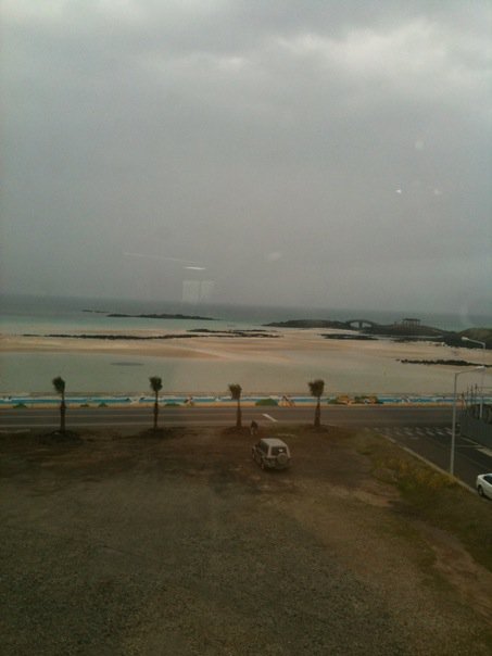 함덕 목욕탕 안에서 바라본 함덕해수욕장.