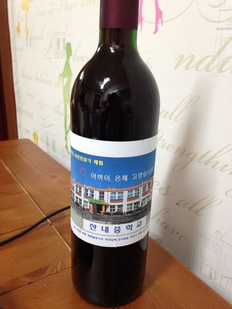 작년 11월 중학교 체험행사 때 만든 산머루 와인이라고.