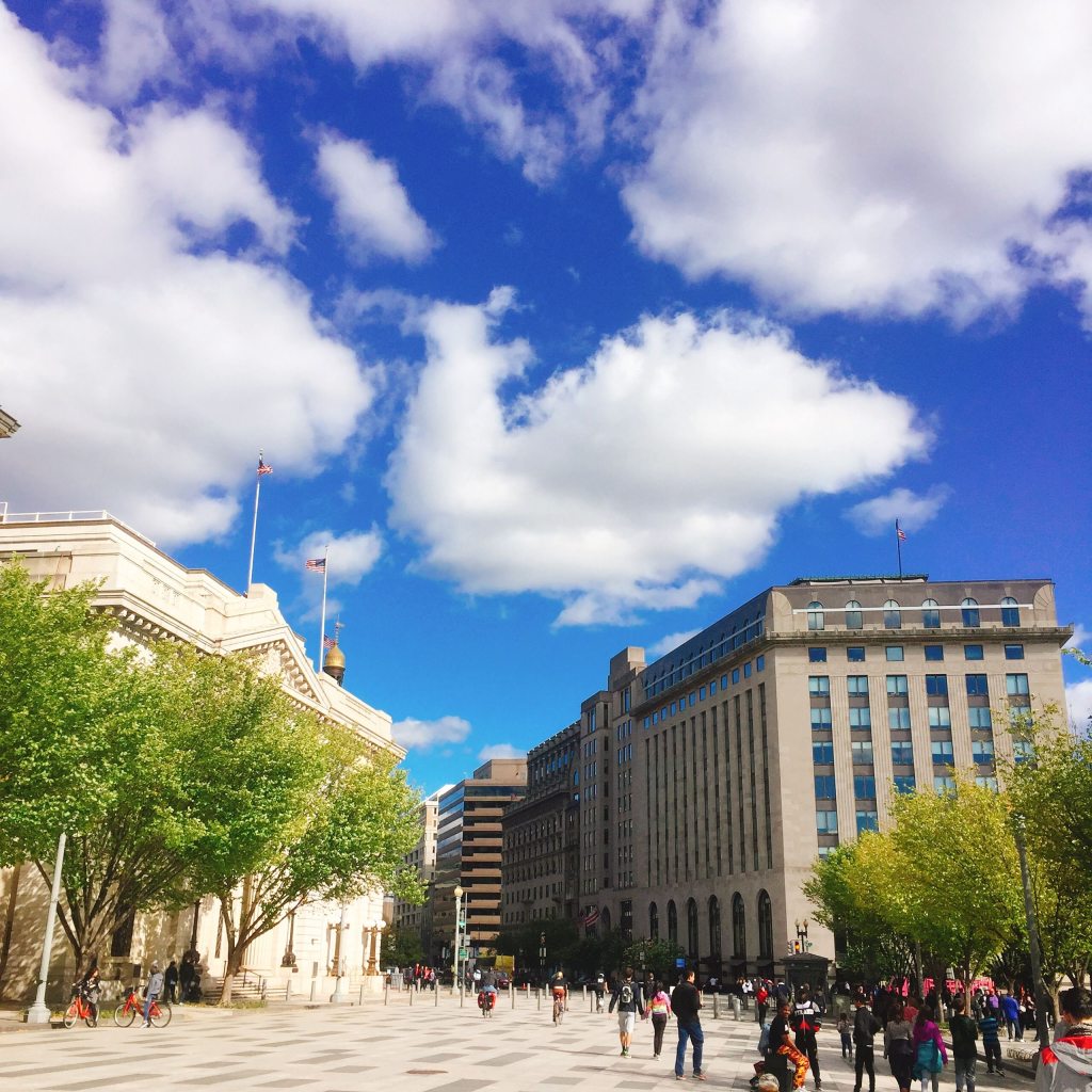 쉬는 시간을 이용하여 워싱턴 거리를 걸었다. 호텔에 짐을 풀고 자연사박물관, 차이나타운, 헌책방, 편의점을 둘러봤는데 오고가는 도시의 길이 인상깊다. 주말이어서 그런지 한산한 거리. 빌딩들은 과거와 현재의 모습을 조화롭게 잘 살려냈고, 높이는 일정해서 어느 곳에서나 맑은 하늘이 보인다.