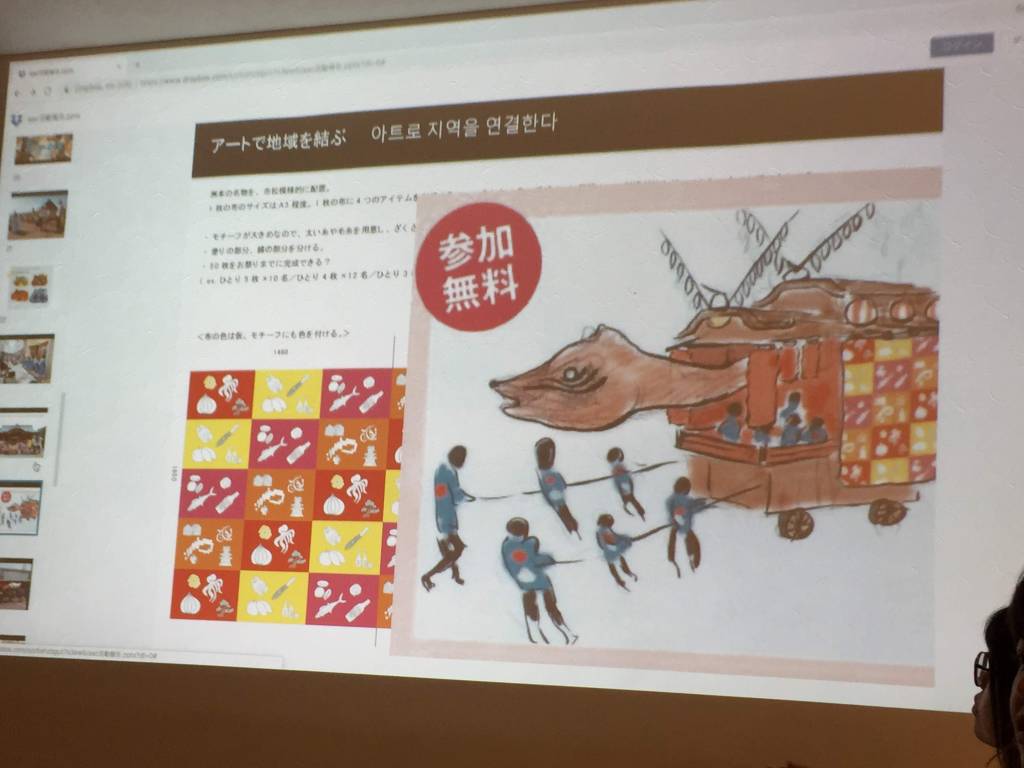 저녁을 먹기 전에는 <엔피오아트센터>를 방문했는데 그들은 지역사회에 아트, 즉 예술로 활기를 불어넣는 일, 예술로 지역을 연결하는 일을 한다. 쓸모 없게 된 공원의 분수를 공공 수영장으로 바꾸거나, 일본 전역에서 너구리를 좋아하는 사람들을 모아 축제를 기획하거나, 기와 산지로 유명한 아와지섬을 알리기 위해 기와 음악을 만들어서 전파하는 일 등을 해왔다.
