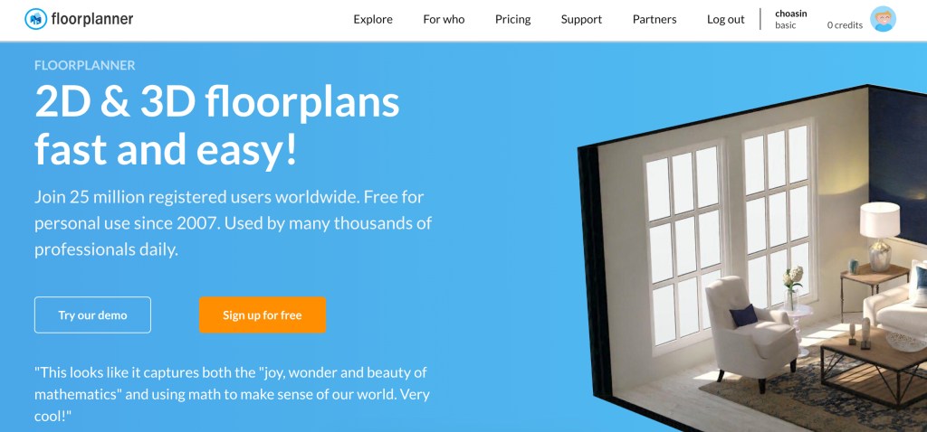 그래서 무료 도면 서비스를 찾았는데 네델란드 로테르담에 있는 기업이 만든 플로어플래너라는 서비스.