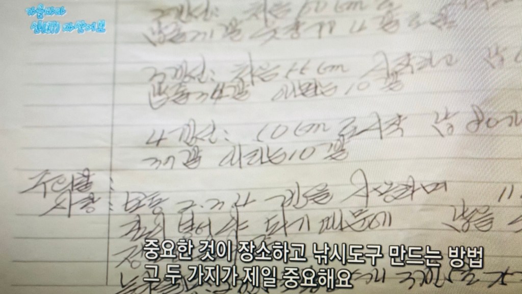 그의 비책이 뭘까? 아마도 대부분의 사람들은 오랜 세월, 느낌, 경험일 것이라 생각했겠지만 그가 중요하게 생각하는 것은 장소하고 낚시도구 만드는 방법이란다. 이 두가지는 축적된 정보이다. 그리고 이 어부는 이 정보를 꼼꼼히 기록해두었다.