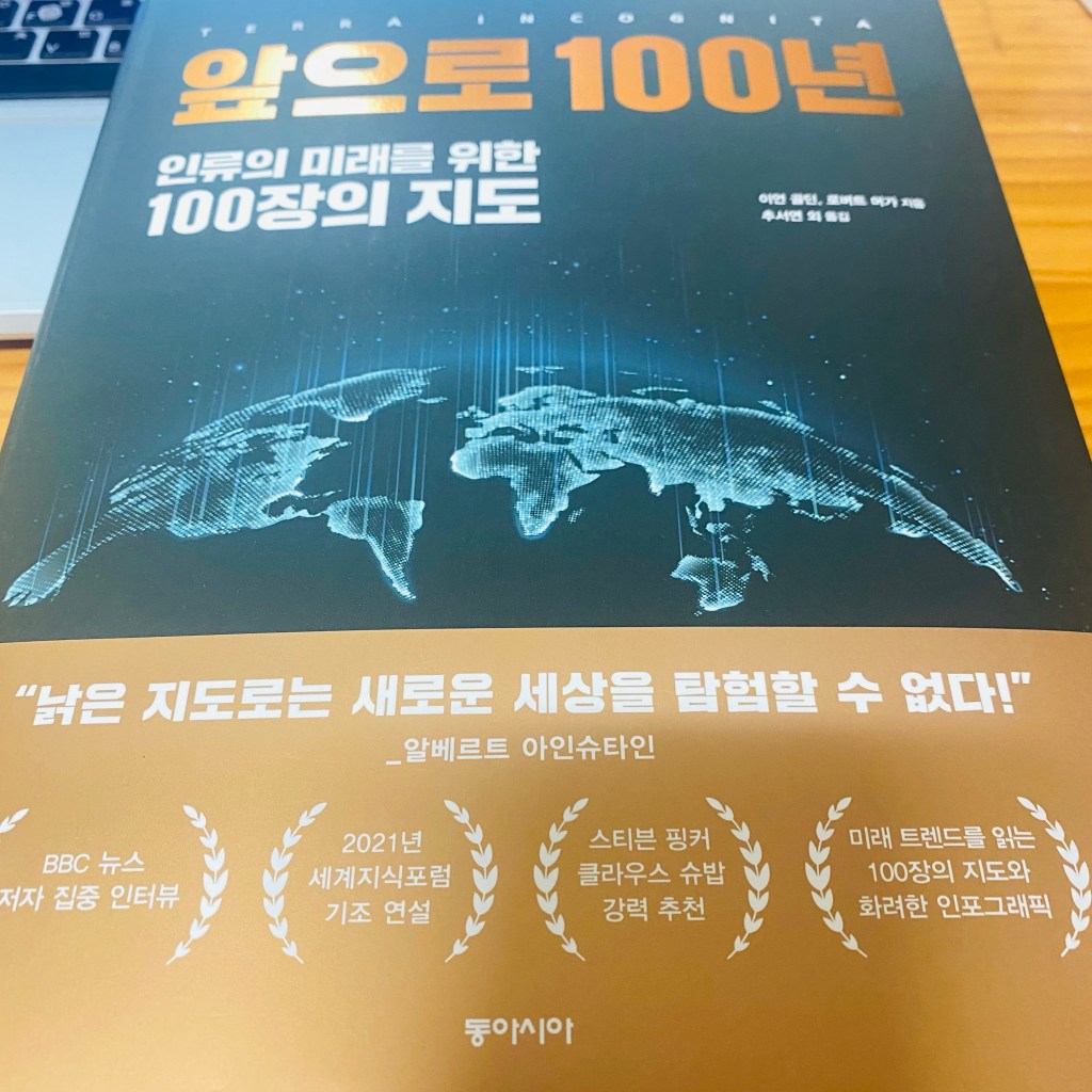 인류의 미래를 위한 100장의 지도라는 부제를 단 [앞으로 100년] 책. 서문에 우리가 흔히 보는 왜곡된 지도인 메르카토르 도법으로 만든 지도와 골 페터스 도법으로 만든 지도를 비교한 이미지가 인상적이다. 이미지는 편견을 만들어내고 그 편견이 오래 지속되면 사람들은 그것이 편견인줄 조차 모르게 된다.