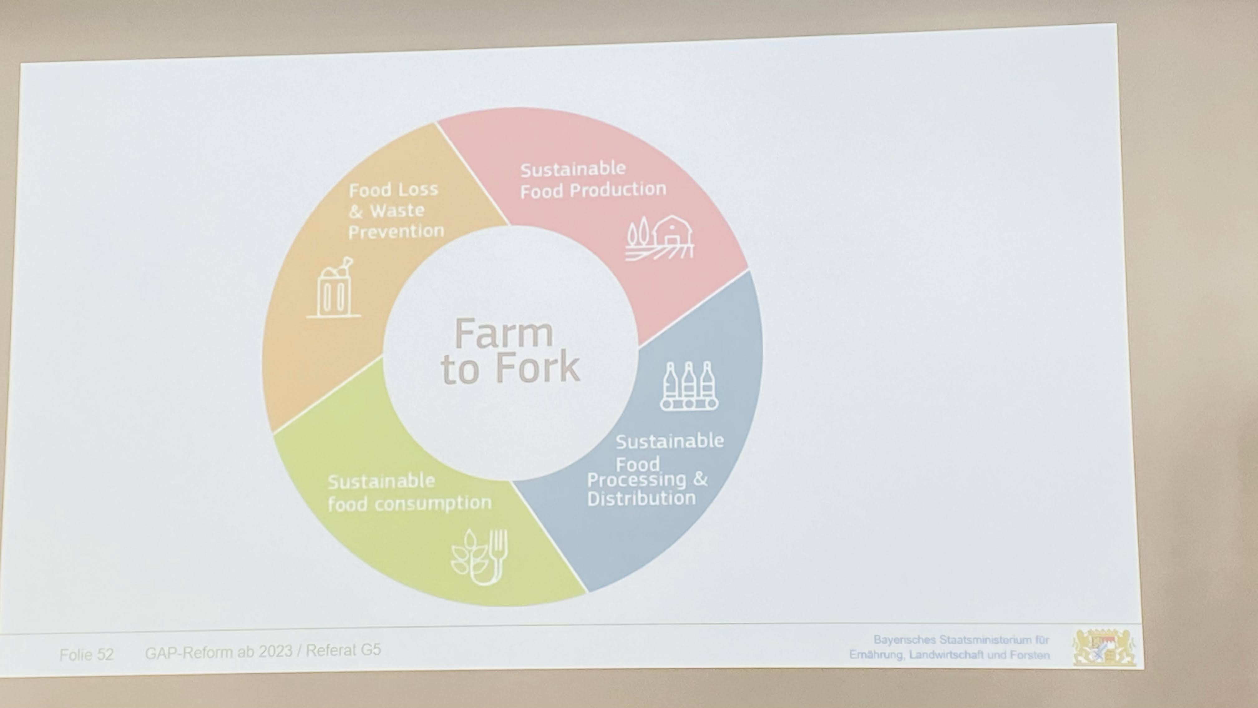 바이에른주는 농업이 유명한 주다. 또 유기농으로도 유명하다. 유기농 비율은 30% 정도이다. 주 차원에서 유기농업에 대한 지원은 점점 더 많아질 예정이며 정책도 그런 방향으로 나아가고 있다. 지원을 받는 농가는 생태계의 다양성을 확보하기 위해 재배 작물도 계속 바꿔줘야 하고, 전체 농지 가운데 4%는 휴경을 해야 한다.