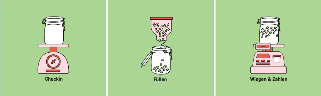 독일 제로웨이스트운동의 시발점이 된 최초의 상점, Original Unverpackt는 포장지를 쓰지 않는다. 비누와 세제와 같은 생활재와 잼, 치즈, 초콜렛, 곡물 등의 음식 재료를 사려면 소비자는 용기를 가져와야 한다. 용기를 직접 가져오거나 가게에서 제공하는 재사용 용기를 대여해야 하기 때문에 냉동/냉장 식품은 판매하지 않는다. 현재는 식품위생 규정에 맞춘 신선한 육류제품을 판매할 해결책을 찾고 있다고 한다.