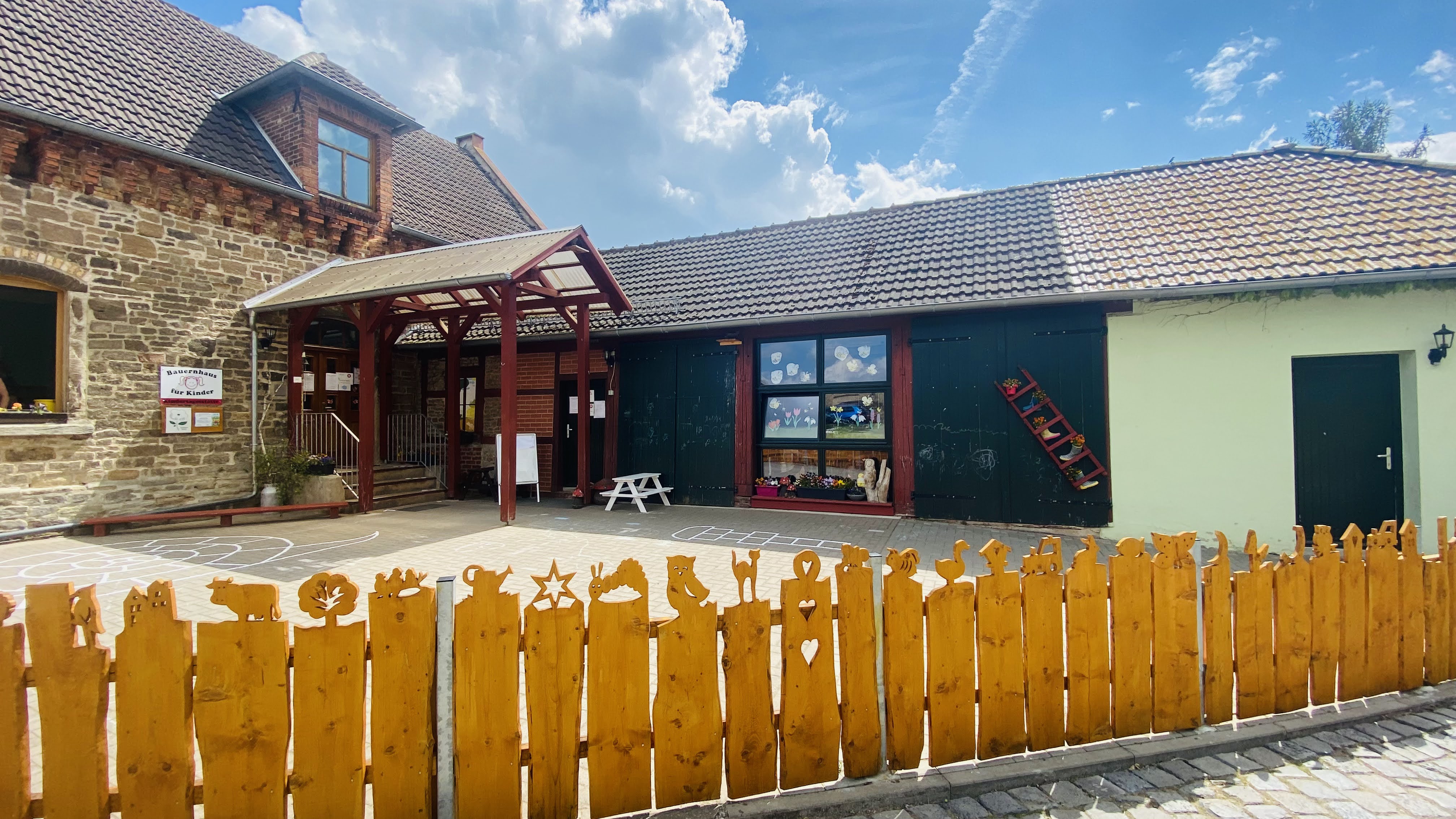 “우리와 함께 농장을 경험할 수 있습니다. 닭, 양, 염소, 말, 돼지, 토끼, 기니피그가 이곳에 살고 있습니다. 농장 어디를 가나 동물들을 쓰다듬고, 교감하고, 냄새를 맡을 수 있습니다. 동물들은 먹이를 주고 사랑으로 돌보아야 합니다. 우유는 어디에서 오나요? 돼지는 무엇을 먹나요? 닭은 알을 몇 개 낳나요? 우리 농장의 넓은 부지는 운동, 게임 뿐만 아니라 단순히 자연을 즐길 수 있는 수 많은 기회를 제공합니다. 전문성을 갖춘 직원들이 다양한 여가 활동과 주변 자연을 알 수 있는 기회를 제공합니다.“