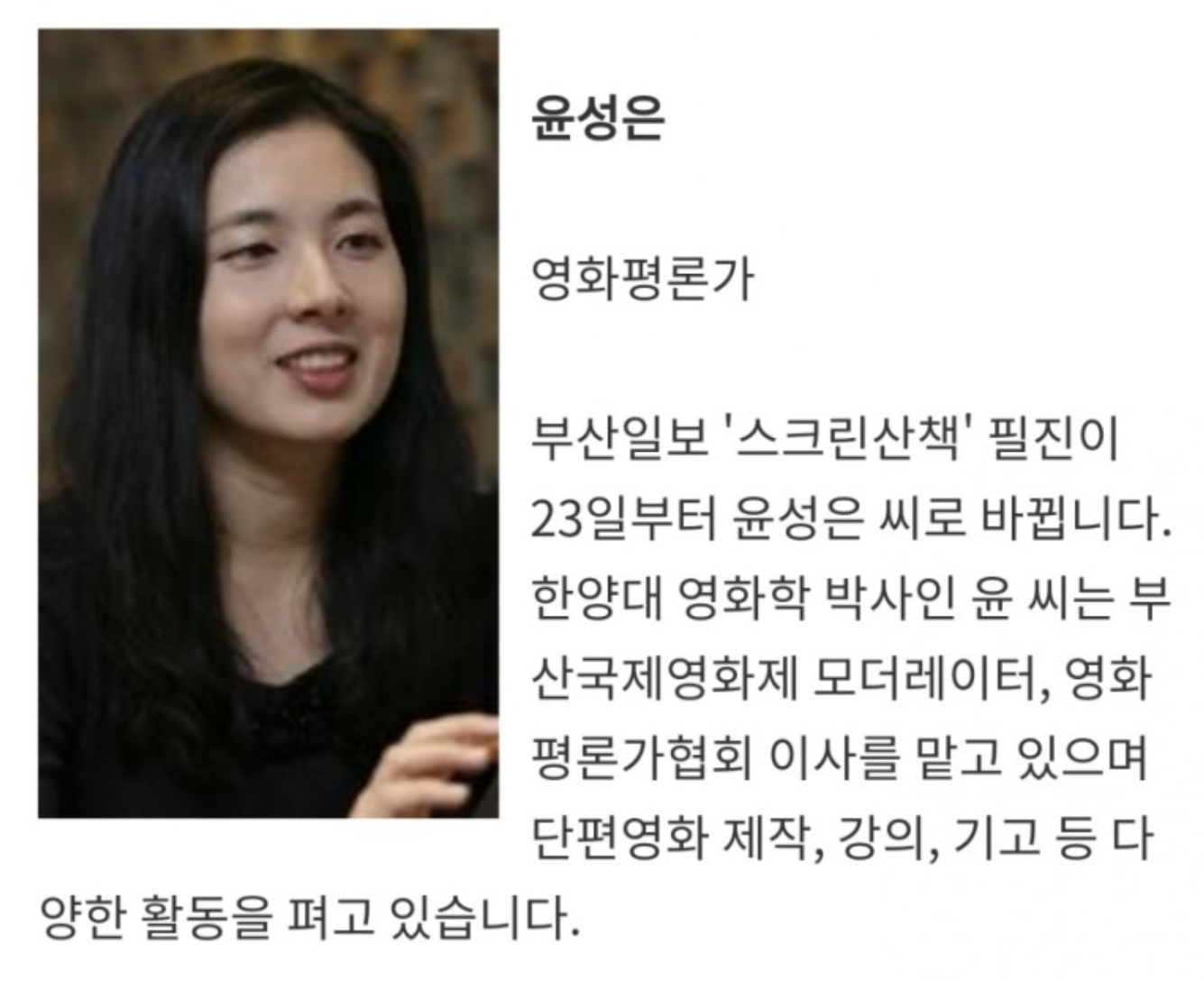 문득 유튜브에서 영화평론가 윤성은씨의 이야기를 듣다가 어디서 본 듯한 느낌이 들어서 검색을 해봤다. EBS세계테마기행 일본영화기행에 출현했구나. 본 기억이 난다.