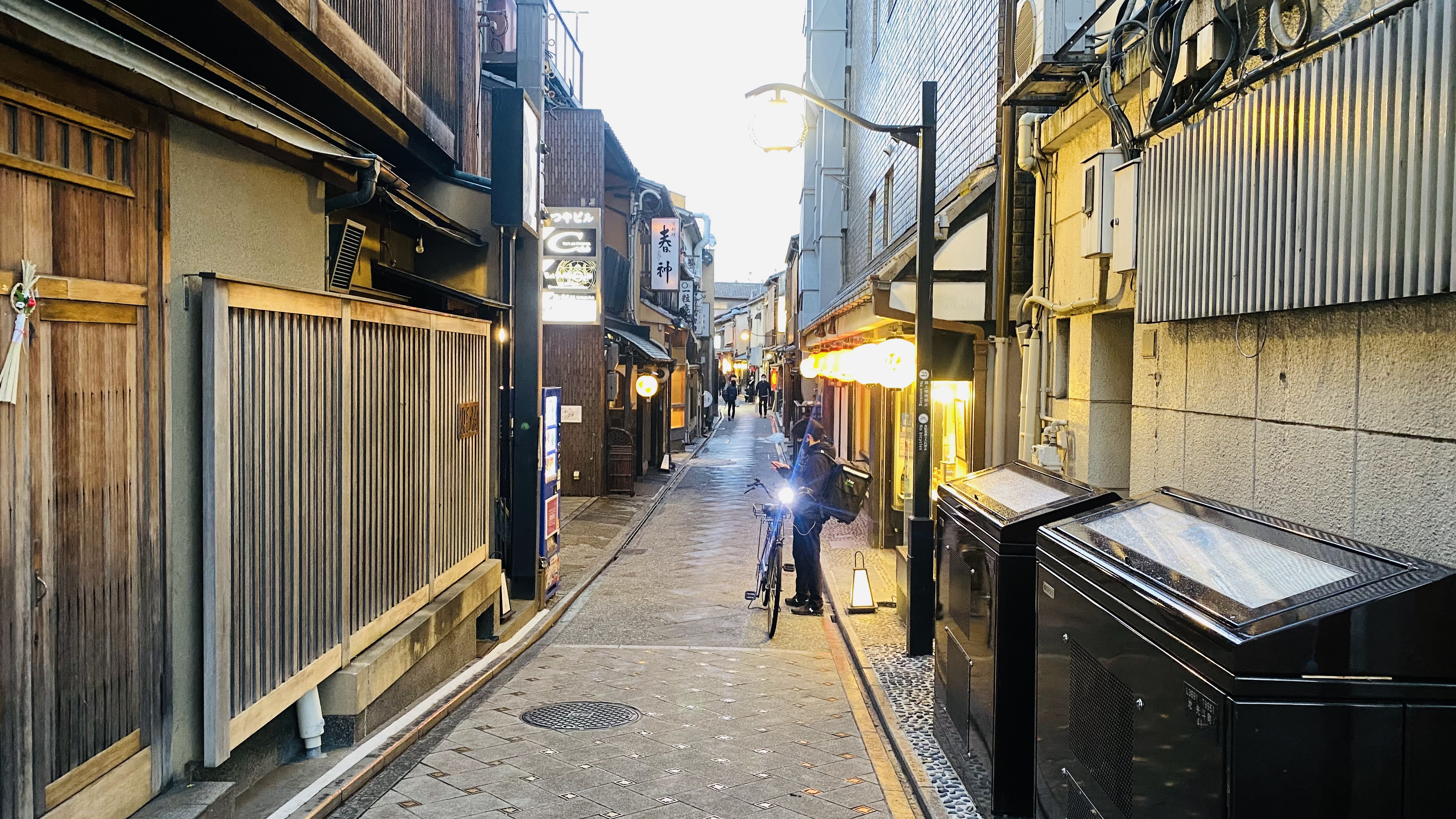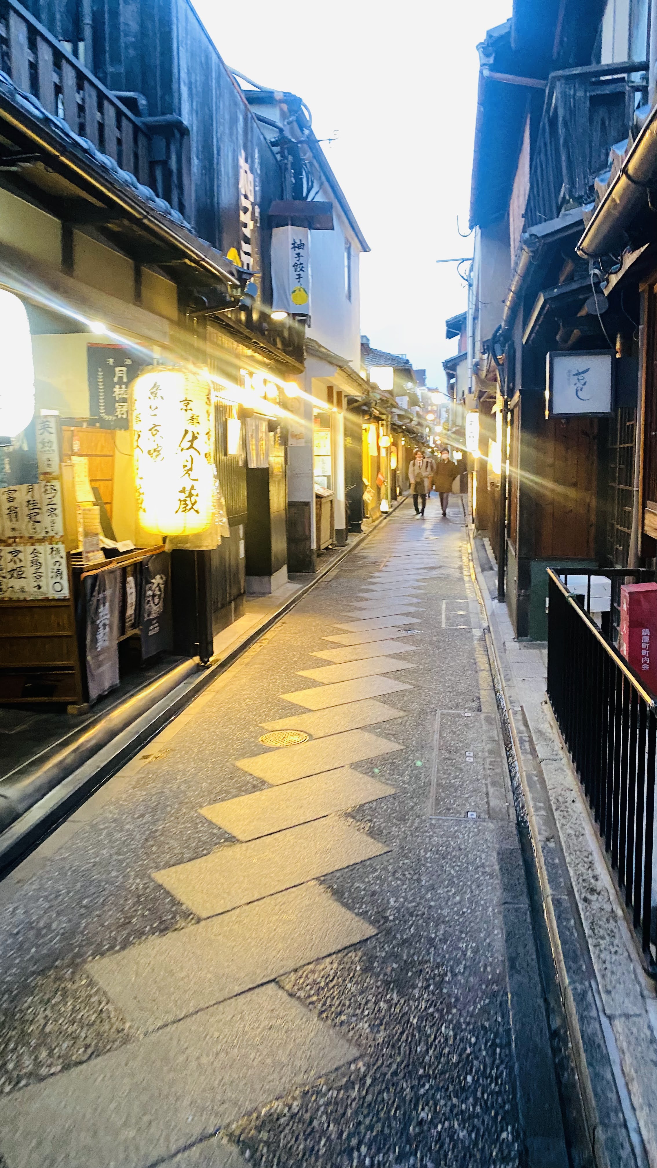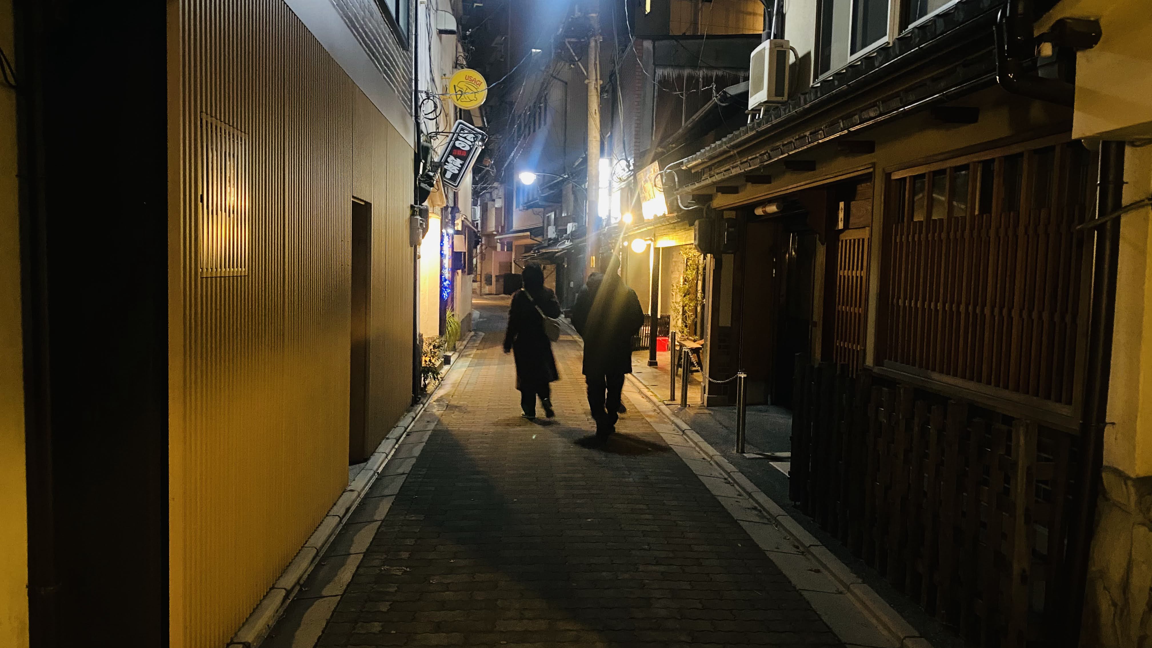 첫날 저녁, 교토 시내 중심부를 흐르는 카모강(鴨川) 근처의 식당을 찾았다. 카모강은 그리 큰 강은 아니다. 도림천이나 중랑천 정도의 느낌이랄까. 강둑에는 산책로가 정비되어 있고, 강가를 따라 오래된 가옥들이 자리를 잡고 있고, 그곳에는 밥과 술을 파는 선술집들이 쭈욱 펼쳐져 있어서 야경이 멋진 곳이다. 추운 겨울 날씨라 사람이 없었지만 따뜻한 계절에는 강둑 산책로를 따라 휴식을 즐기는 사람들이 꽤 많다고 한다.