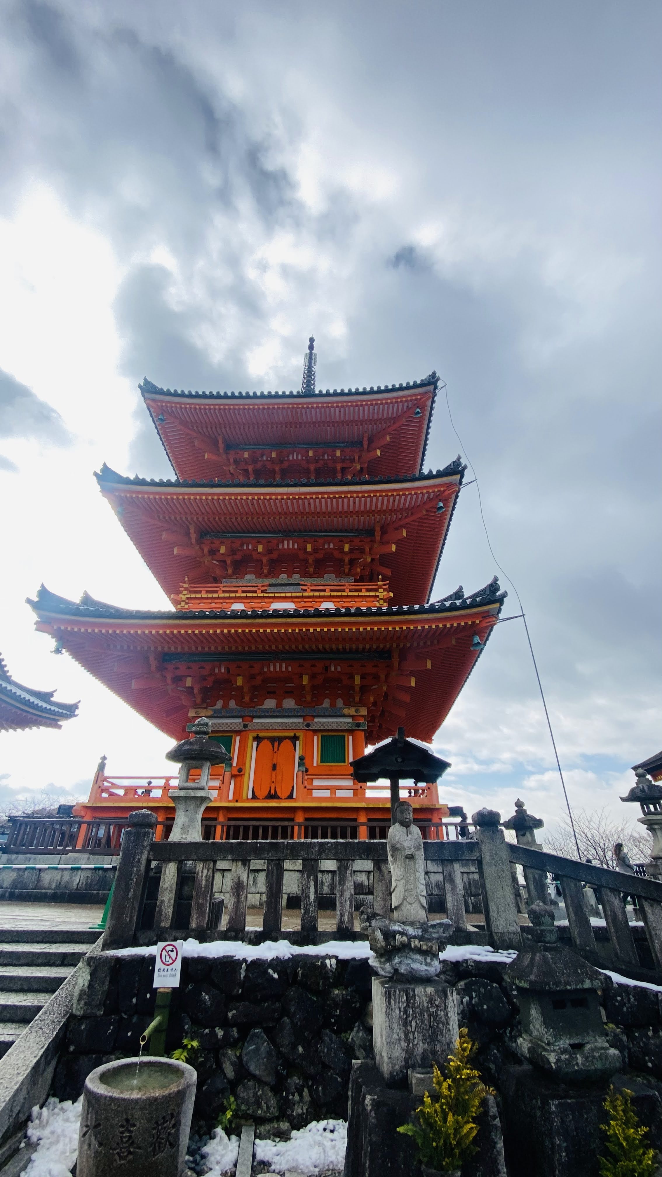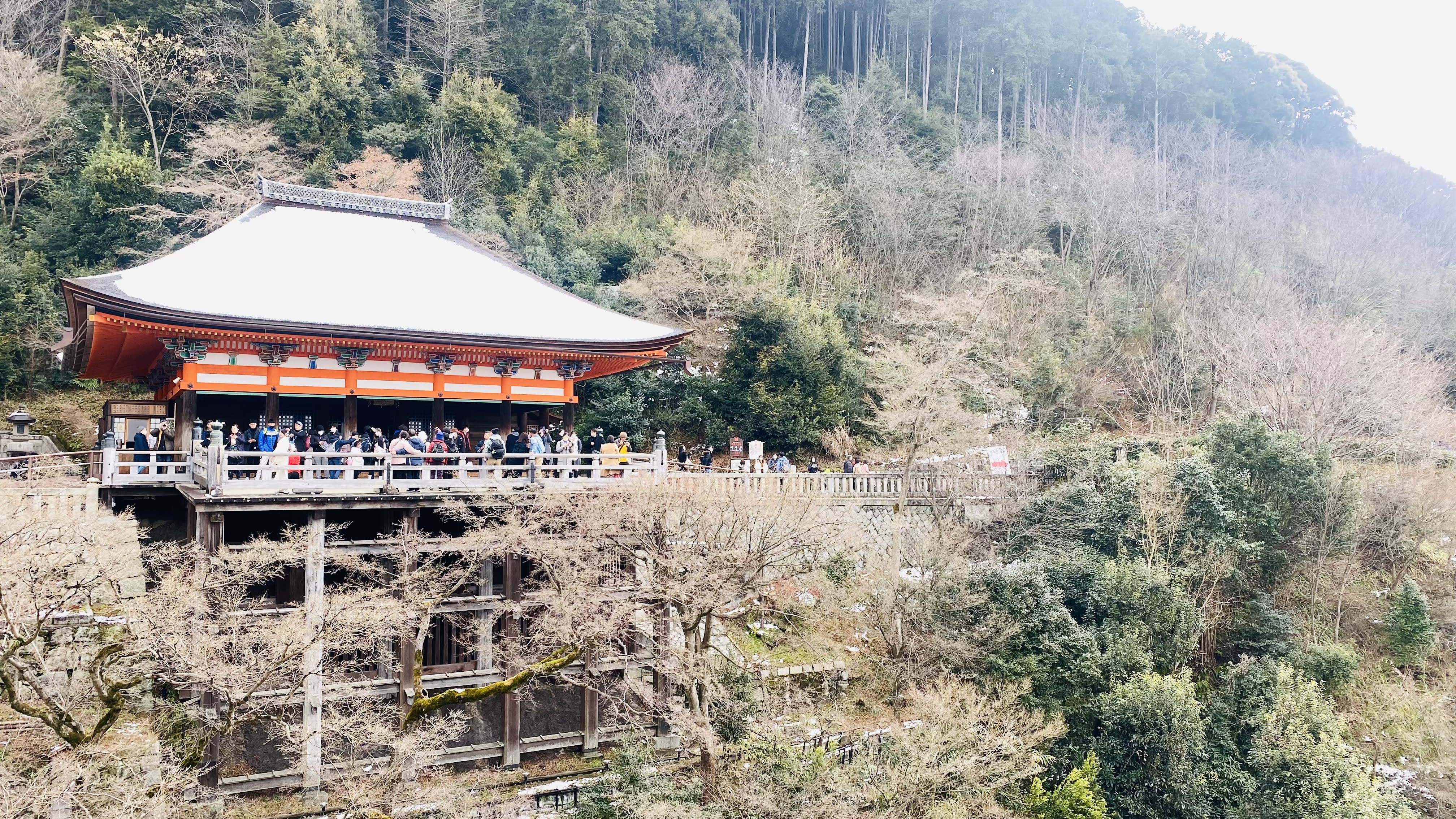 위 사진에 보이는 곳이 본당인데, 지붕을 노송나무 껍질을 얇게 만들어서 촘촘히 붙였다고 한다. 일본에서 많이 쓰는 방식이라고 하는데 그러고보니 앞서 방문한 ‘지은원’의 지붕도 이와 비슷한 느낌이었다. 기요미즈데라는 8세기 헤이안시대 승려인 엔친이 건립했다고 알려져 있다. 지진과 화재로 여러차례 훼손되었으나 지금의 모습은 도쿠가와 막부의 시대인 1633년에 재건되었다고 한다.