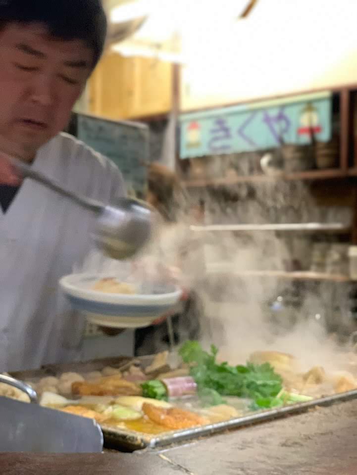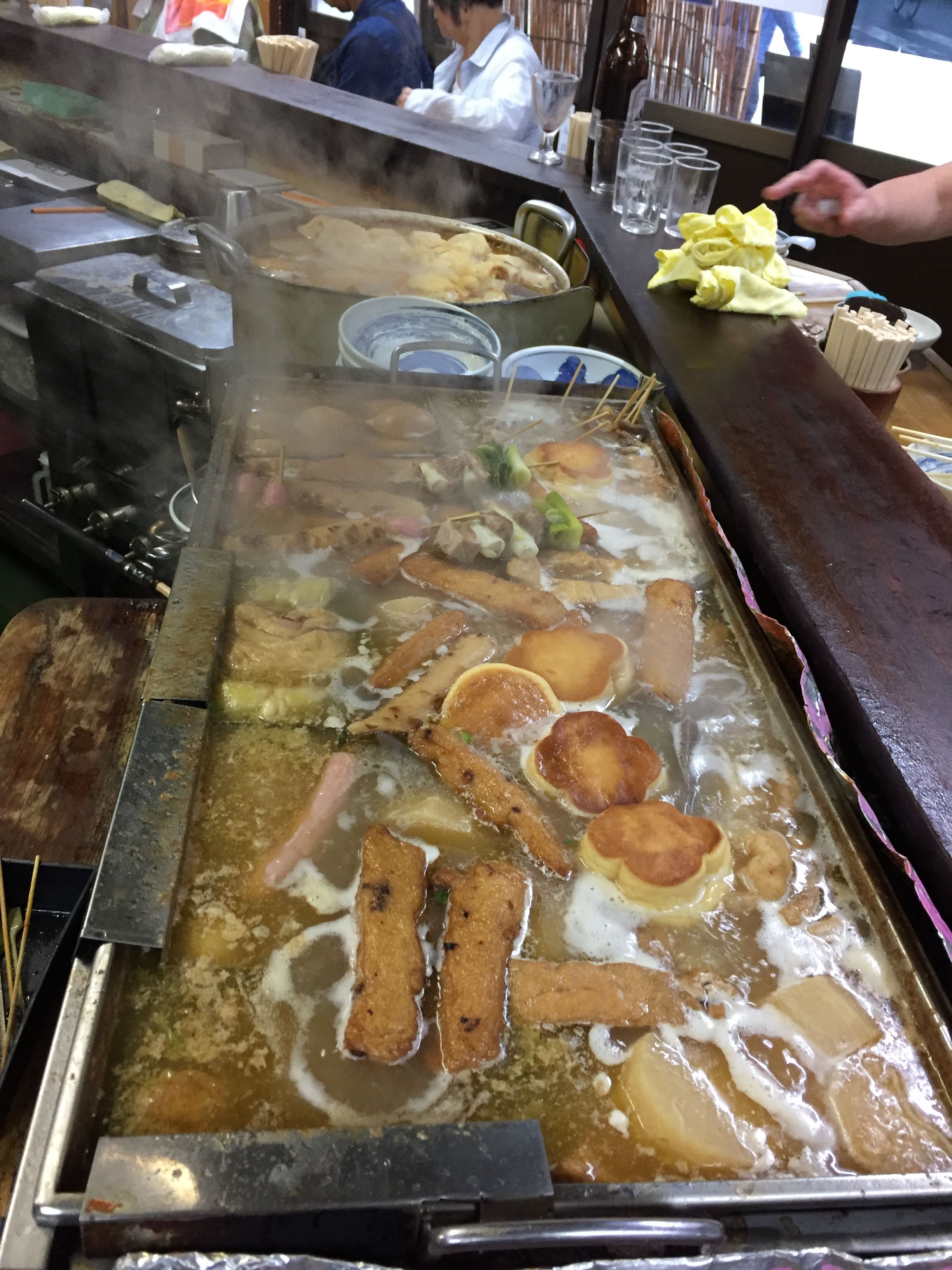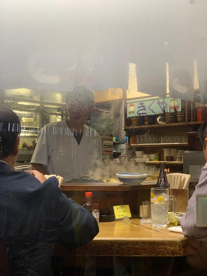 당시에는 관광객들이 찾는 곳이라기 보다는 동네 맛집 분위기였다. 퇴근하는 회사원이 잠시 앉아 오뎅 한 접시에 맥주 한 잔을 먹고 가는 곳, 자전거를 타고 온 동네 할아버지 몇 명이 앉아서 사케 몇 잔에 옛추억을 이야기하는 곳, 그런 분위기에 낯선 이방인인 우리들을 반갑게 맞이해주는 4명의 주방장이 있었던 곳, 오뎅전문점 카쿠야다.