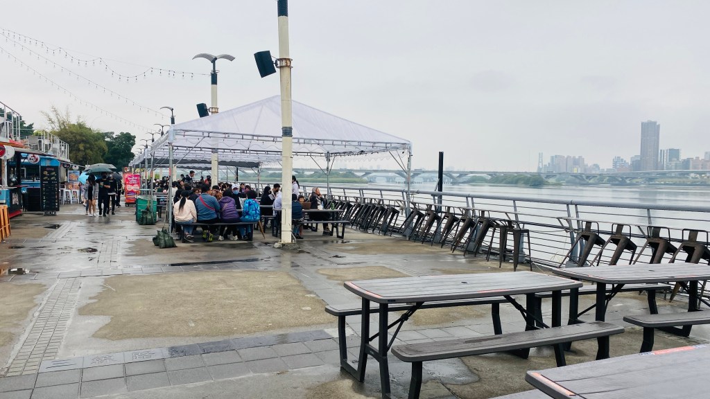 여행 기간 중 유일하게 비가 내린 날, 강가를 걷고 있었다. 단수이강가에 있는 다다오청 컨테이너마켓은 세계 여러 곳의 음식과 술을 판다. 치킨과 카스맥주를 파는 한국 식당도 있다. 노을이 질 무렵 강을 보면서 맥주 한 잔 하면 딱 좋은 곳이다. 그러니까, 서울의 한강공원에 야외 술집이 있는 느낌이다. 강가를 따라 길게 이어진 산책로와 자전거 도로가 있다.