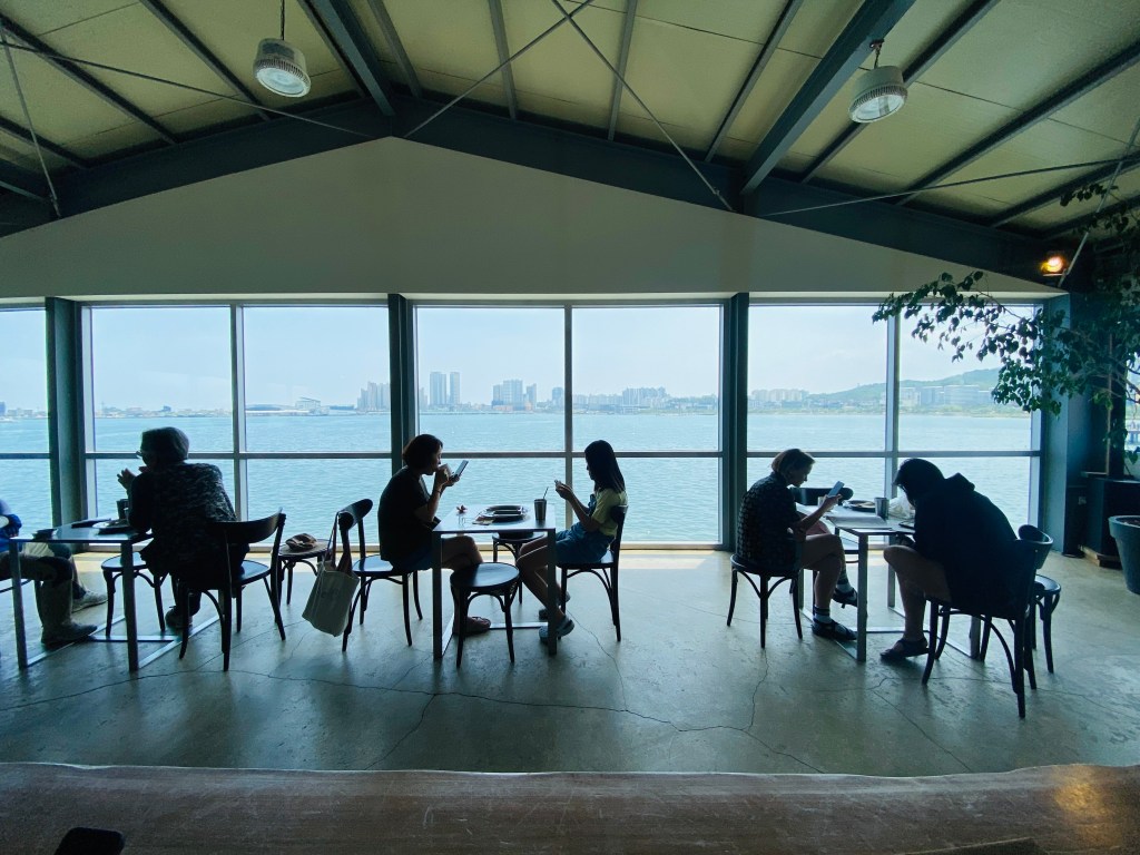 카페 앞 배를 바다로 내려보내는 자리에는 날씨가 좋을 때는 카페 손님들이 자리가 된다고 한다.
