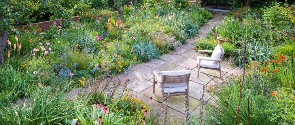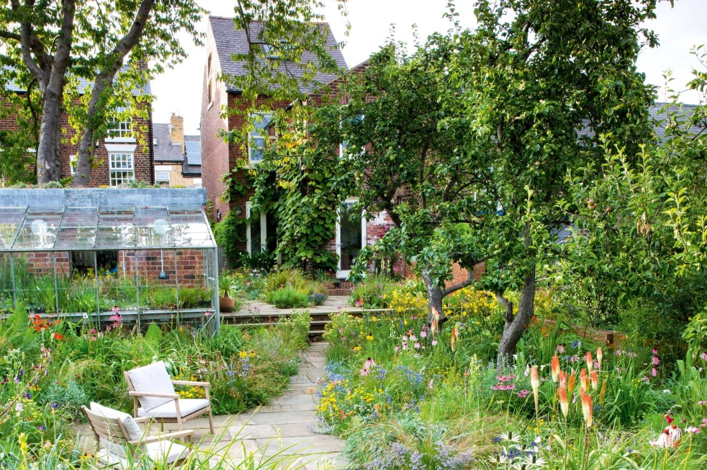 셰필드의 가파른 언덕에 있는 계단식 집 뒤편 뒷마당은 그의 야외 연구실이다. 그가 이곳을 구입했을 당시에는 버려진 땅이었는데 허리 높이까지 자란 잡초를 제거하고 남은 나무를 가지치기하면서 그늘을 만들었다. 그가 만든 양식화된 초원에서는 늦겨울부터 구근과 프리뮬라, 라넌큘러스 같은 식물이 잡초가 빠르게 서식할 수 있는 맨땅의 면적을 줄이고, 봄이 되면서 키가 큰 여름 식물이 자라는 모습을 볼 수 있다. “이곳에서는 식물이 성장하면서 공간을 어떻게 활용하고 사용하는지 살펴볼 수 있으며, 디자인 관점에서 이를 개념화할 수 있는 것이 중요합니다.”라고 그는 말했다.