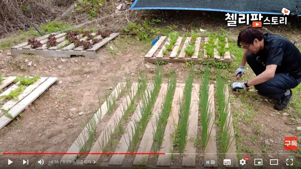 유튜브에 팔레트를 이용한 텃밭을 만들어보자는 영상을 봤다. 팔레트는 농사에 꽤 다양한 용도로 활용되고 있는데 보통은 틀밭 제작으로 많이 사용된다. 그런데 이 영상에서는 팔레트 빈 공간에 흙은 채우고 그곳에 작물을 심는다. 작물 사이의 간격도 유지해주고 풀도 잡아주는 효과도 있어서 작은 텃밭에는 괜찮은 아이디어라는 생각이 들었다.