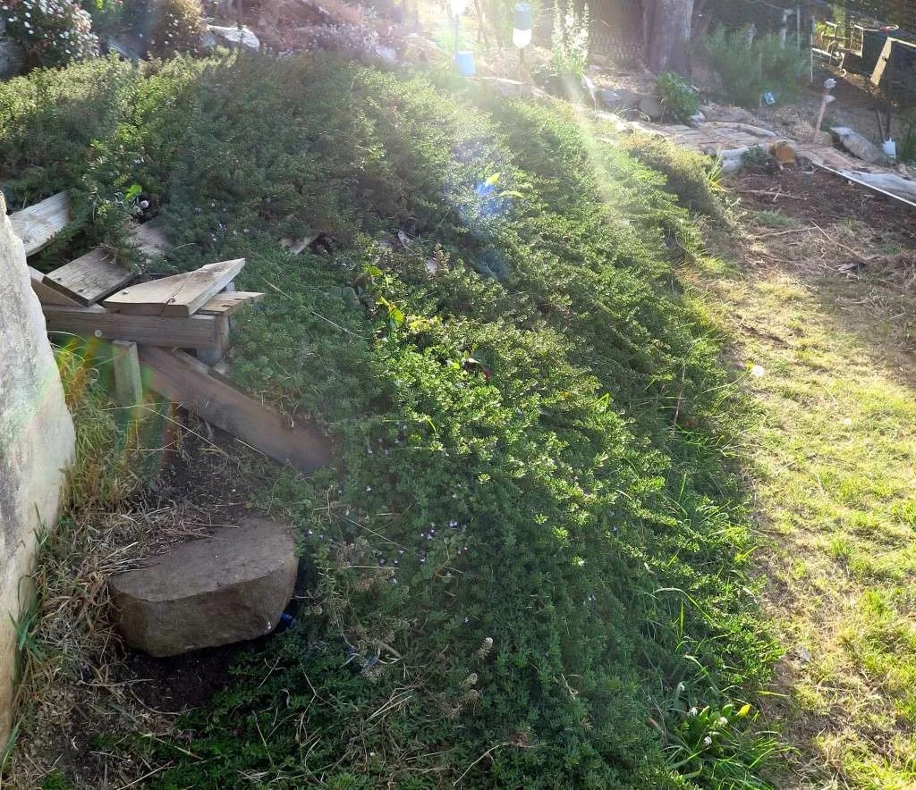 이것을 처음 시도해본 이 곳 관계자의 설명에 의하면 어떤 식물이 경사진 곳에서 잘 자라고 경사면을 안정화시키는 효과도 볼 수 있을지 처음에는 알 수 없었다. 여러 식물들을 테스트해본 결과 이들이 선택한 식물은 부비알라(Myoporum parvifolium)였다. 부비알라(호주의 고유종이다)는 지표면에 생육하면서 지면을 피복하는 지표식물의 한 종류인데 보통 수목 하부에 식재해서 경관을 조성하거나 경사면에 심어서 토양 유실을 방지하는 용도로 심는다.