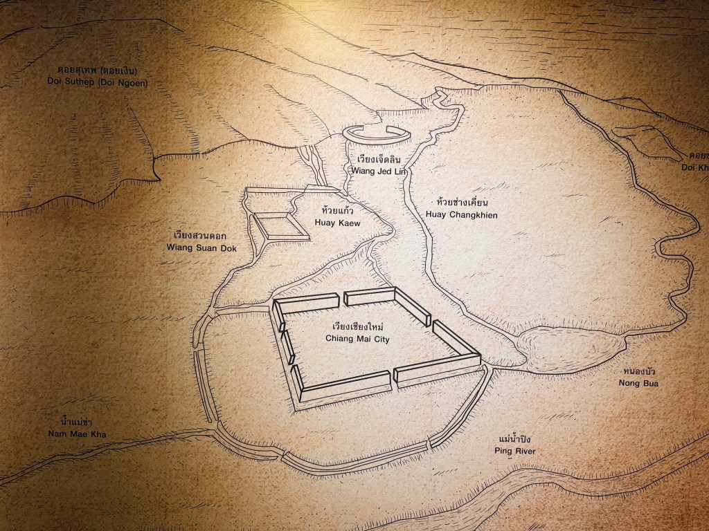 - 란나 왕국의 중심인 치앙마이는 요새화된 성벽과 해자로 둘러쌓여 있다. 지금은 대부분의 성벽이 허물어지고 일부만 남아 있다.