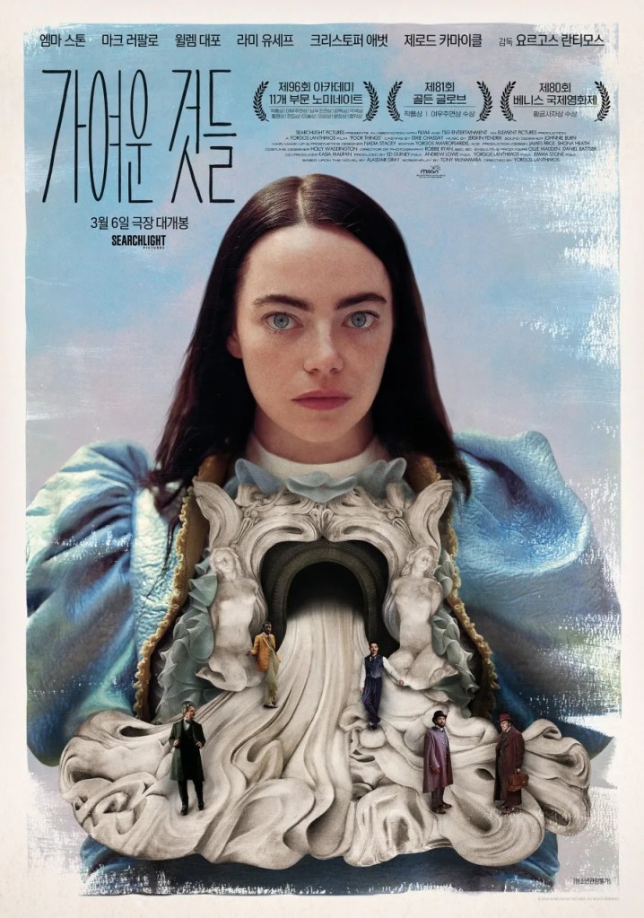 <가여운 것들>은 인간의 사고와 행동은 자라온 환경과 시간에 의해 좌우된다는 전제 아래, 외부와 연결될 시간이 없었던 주인공이 기존의 관습을 어떻게 돌파해나가는지를 보여주는 영화이다. 2시간 넘게 엠마스톤의 연기를 통해 남자와 여자, 이성애와 동성애, 자본주의와 사회주의, 생산수단과 몸, 자기결정권과 정체성 등 여러가지 생각할 거리가 던져진다.