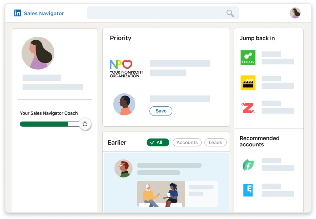 비영리 링크드인은 조직이 주요 기부자를 발굴하고, 전략적 파트너십을 구축하고, 네트워크의 집단적 힘을 활용할 수 있도록 지원한다. 이를 통해 조직은 기부자와의 관계를 더욱 깊게 만들고, 이사회 구성원 발굴, 주요 기부자 및 후원자와의 소통을 효과적으로 진행할 수 있다. 특히, 링크드인 세일즈 네비게이터(Sales Navigator)의 타깃 검색 기능은 비영리 단체가 다음과 같은 인적 자원을 보다 쉽게 찾아 연결하도록 도와준다.