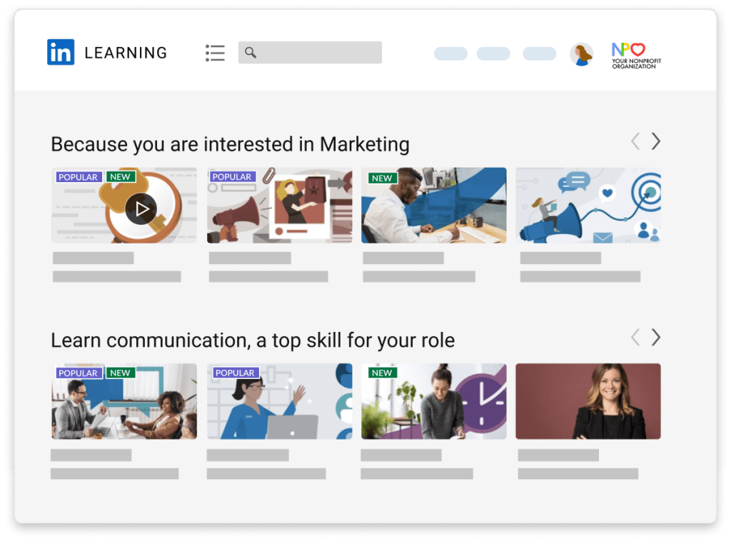 링크드인은 개인화된 학습 경험을 통해 직원들의 성장을 지원하고 필요한 역량을 갖출 수 있도록 돕는다. 비영리 단체를 위한 링크드인은 비영리 인재들의 기술 격차를 해소하고, 전문성을 강화하는 데 도움을 주는 학습 플랫폼을 할인된 가격으로 제공하고 있다. 회원이 되면 21,000여 개 이상의 온라인 강좌에 접근할 수 있는데, 이 학습 경험의 주요 특징은 다음과 같다.