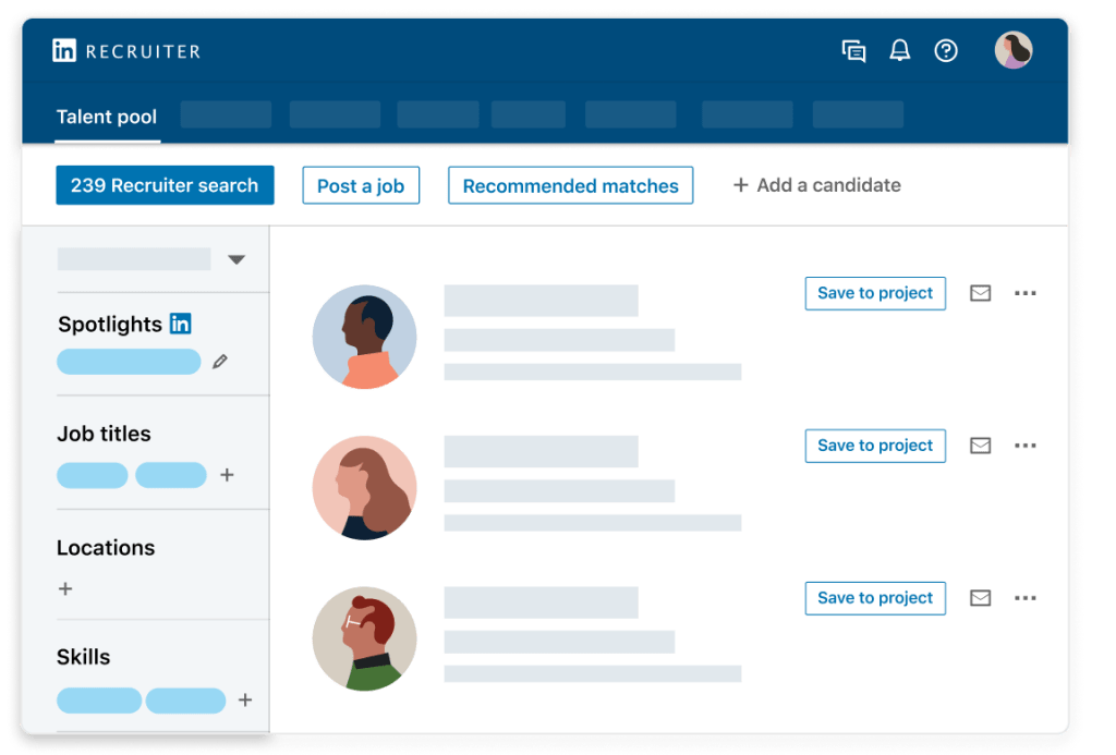 채용 관련된 솔루션은 Recruiter Lite이다. 이 솔루션을 이용하면 단체는 인재 파이프라인을 통해 일일 추천, 알림, 템플릿 등을 활용할 수 있고, 직접 후보자에게 메시지를 보내 소통을 시도할 수도 있다. 이 역이 75% 할인된 가격은 1년 약정 기준 월 42.50달러이다.
