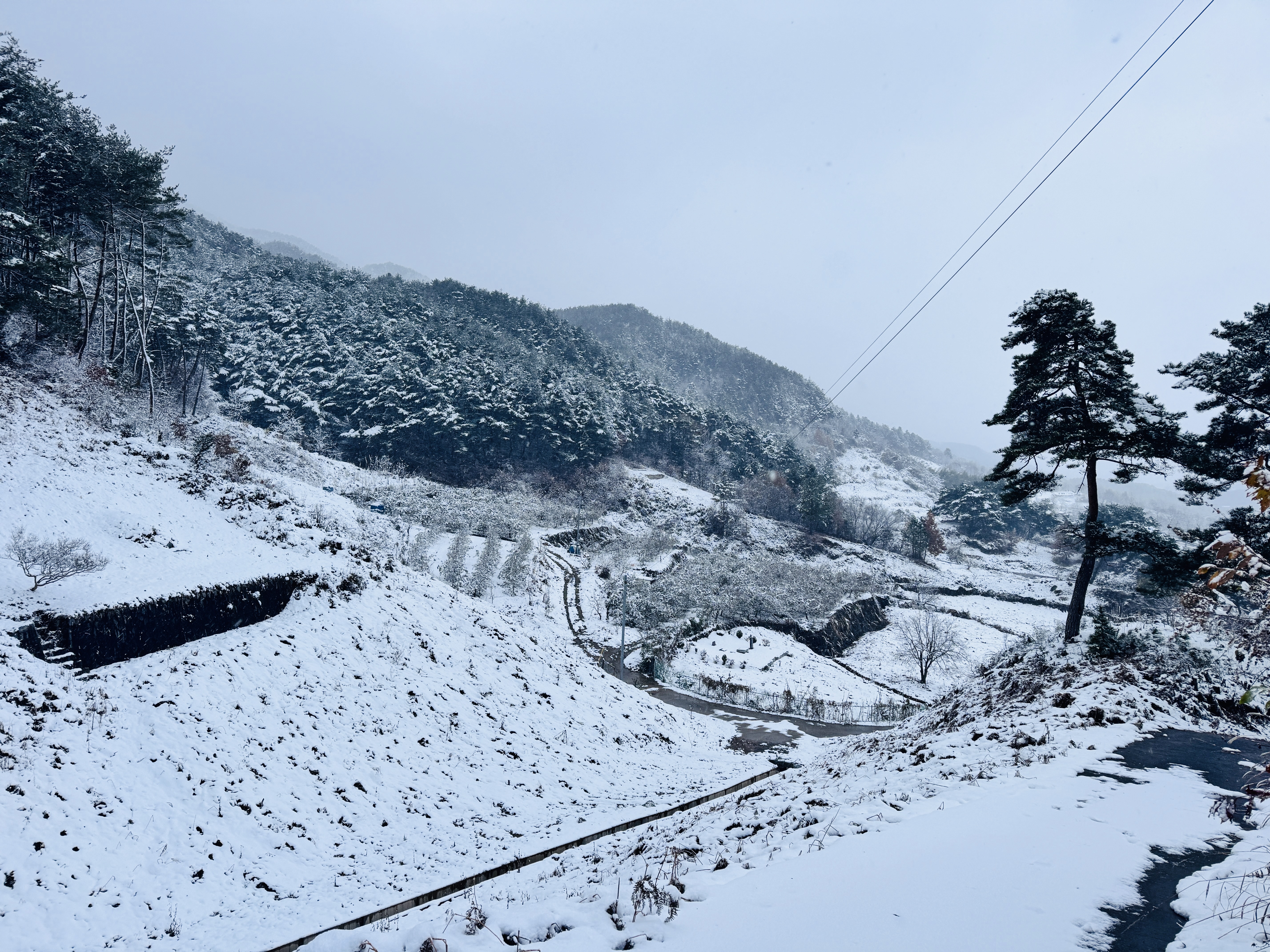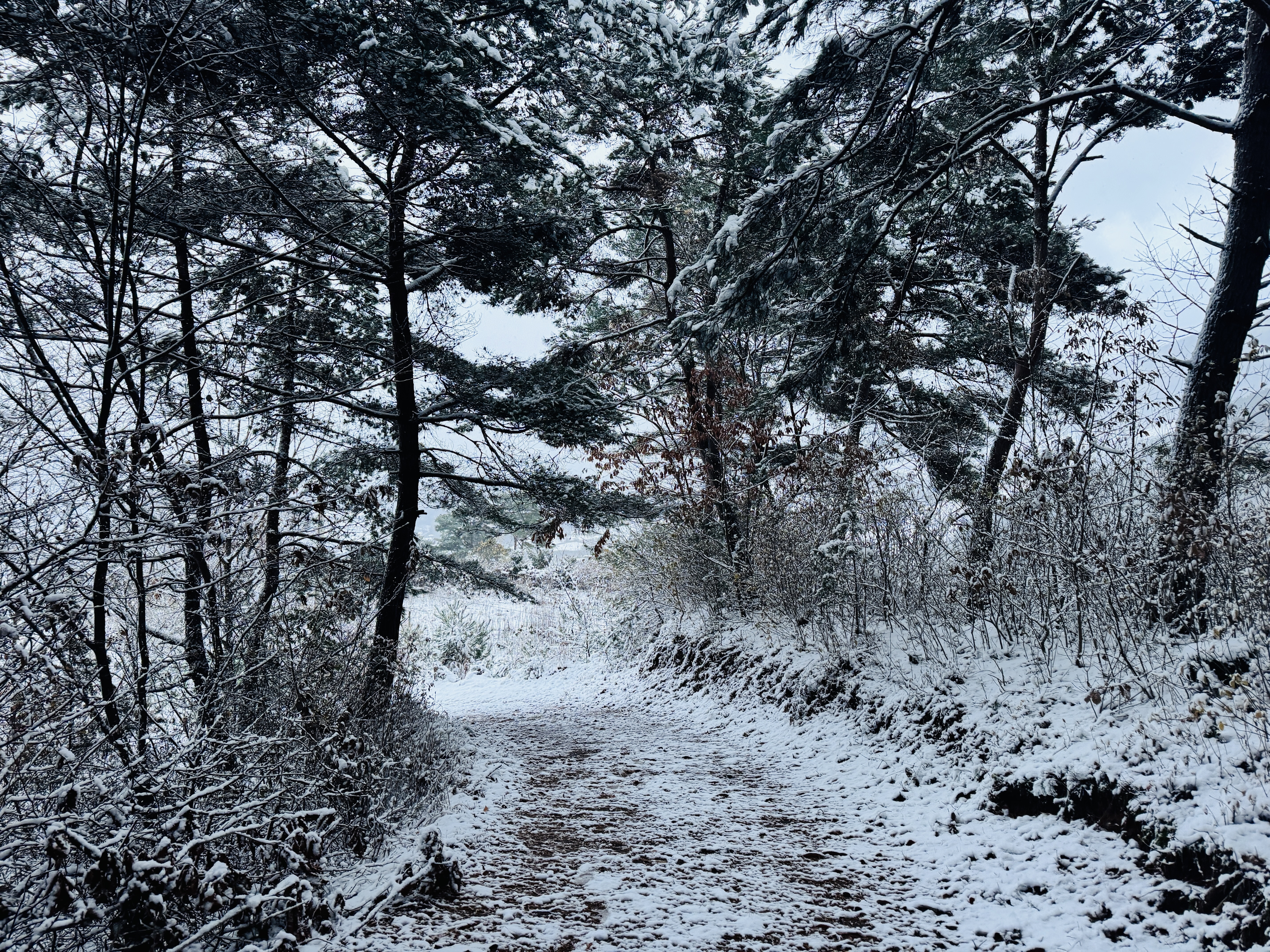 살짝 부는 겨울 바람에 수북히 쌓여있는 낙엽들을 보고 있자니