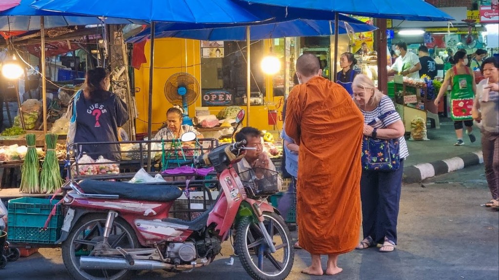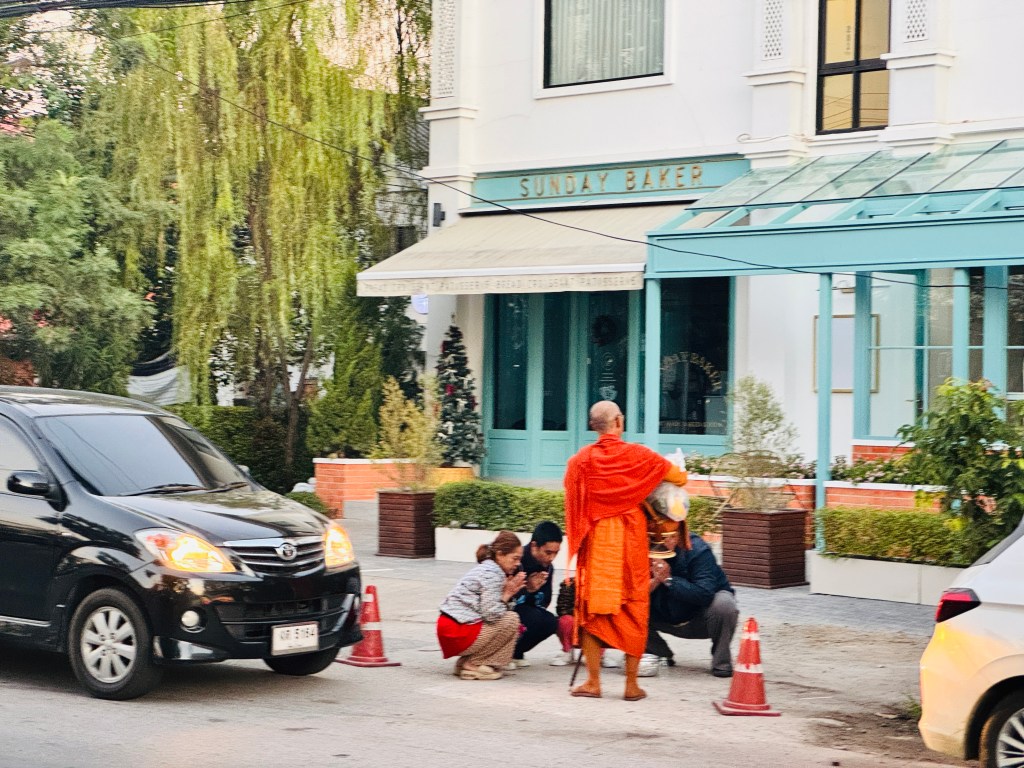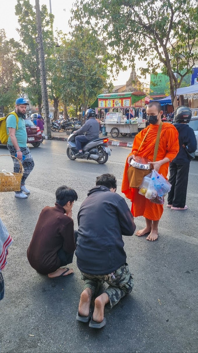 태국은 불교 국가이고, 스님들에 대한 존경심이 일상에 스며들어 있는 곳이다. 치앙마이 새벽 산책을 나가면 흔히 볼 수 있는 풍경이 스님들의 탁발 수행이다. 탁발(托鉢)은 불교 초기시대부터 시작된 것으로 불교 수행자들이 청빈한 삶을 살며 신도들과 만나기 위한 중요한 관행 중 하나이다.