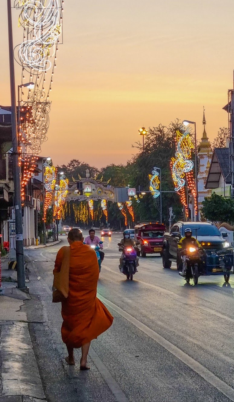 치앙마이에서 새벽 6시쯤 되면 주황색 승복을 입은 승려들의 모습이 보이기 시작한다. 이는 하루를 수행으로 시작한다는 상징적 의미를 담고 있다. 보통 사원은 4시 30분부터 하루가 시작되는데 승려들은 이때부터 탁발 전까지 새벽 예불과 참선을 한다.