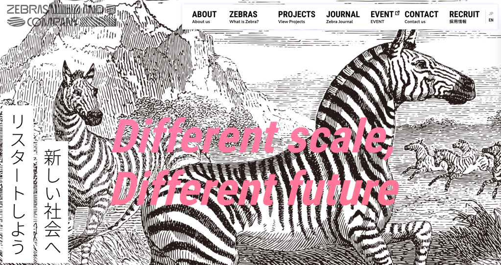 이런 배경 속에서 유니콘에 대비해서 등장한 개념이 “제브라 기업(Zebra Company)”이다. 얼묵말의 흑과 백의 줄무늬처럼 이윤과 사회적 가치를 동시에 추구하는 기업, 즉 성장과 공존을 양립시키는 기업을 뜻한다. Zebra and Company는 이러한 제브라 정신을 일본에서 구체화하고 실험하는 기업이다.
