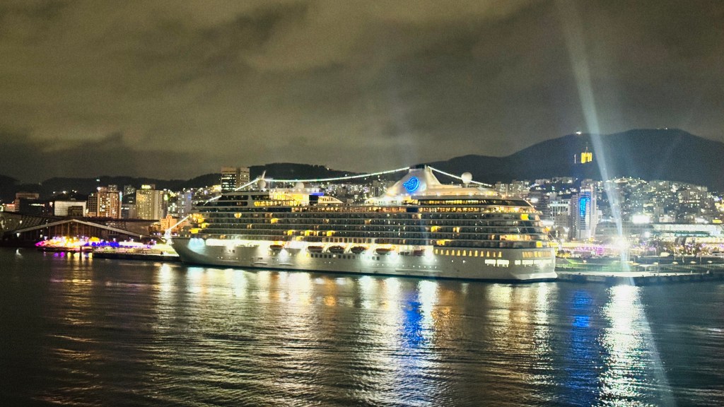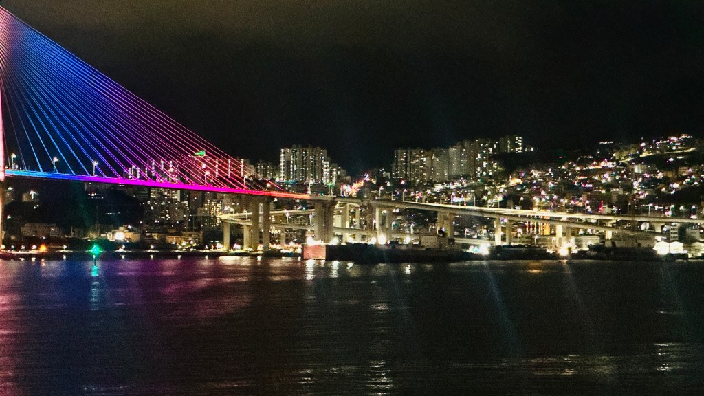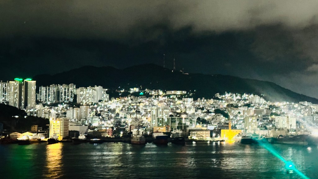- 밤에 출발하는 배를 타서 좋은 점 중 하나는 바다 가운데에서 부산의 야경을 볼 수 있다는 점이다.