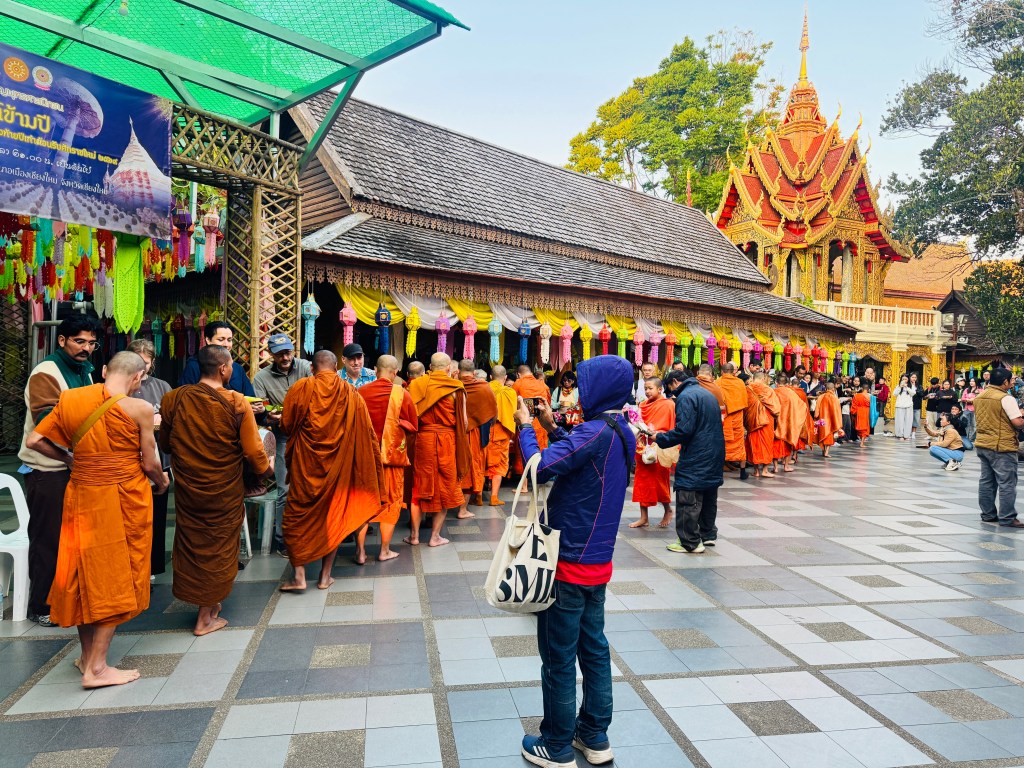 일출을 배경으로 사진을 남긴 뒤, 우리는 사원 안으로 발걸음을 옮겼다. 마침 새벽 공양식이 진행 중이었다. 신자들과 여행객들이 음식과 과일, 쌀을 준비해 스님들에게 올리는 의례다. 새벽 시간에 진행되는 공양식을 보고 있으면 이곳이 관광지라는 생각이 들기보다 비로서 신앙의 공간으로 느껴찐다. 바쁜 출근길을 뒤로 하고 월요일의 시작을 이렇게 맞이하는 경험은 다가오는 한 주를 또 기대하게 한다.