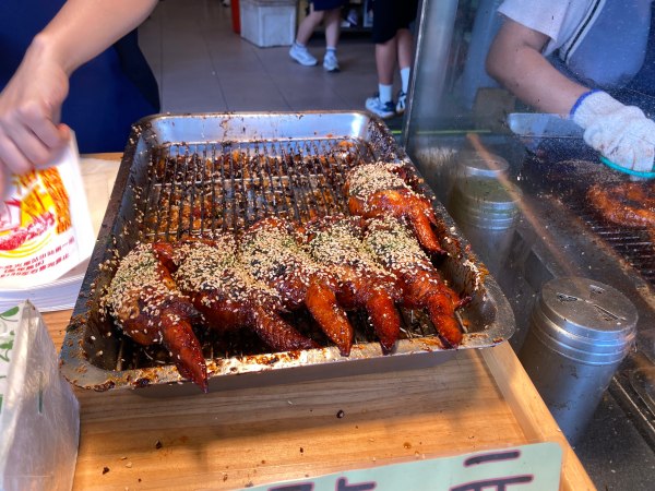 지우펀을 둘러본 후 기차를 타고 도착한 스펀역 바로 옆에 있는 노점상. 닭날개볶음밥이라고 할 수 있는데 닭날개의 뼈를 발라내고 그 안에 볶음밥을 채운 후 그릴에 구워준다. 닭날개에 매콤한 양념, 그 안에 볶음밥, 그릴에 구웠는데 맛이 없을리가 없다. 대만에는 닭요리가 유난히 많다.