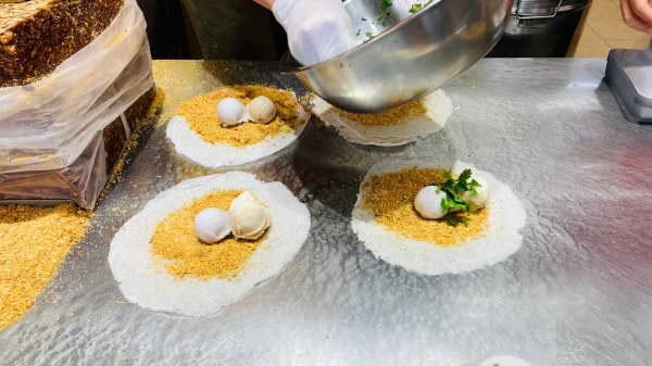 대만 스펀역 근처에 가면 꼭 먹어보라고 하는데 두 가지 음식이 있다(고 들었다). 하나는 앞에서 소개한 닭날개볶음밥이고, 다른 하나가 땅콩 아이스크림이다. 스펀역 거리노점에는 땅콩아이스크림 가게가 여러 곳 있는데 레시피는 똑같다. 분말땅콩이 섞인 소프트아이스크림을 생각했는데 그게 아니었다. 아마도 녹인 흑설탕에 땅콩을 넣고 굳힌 다음, 그것을 대패로 갈아서 익힌 밀가루반죽 피 위에 듬뿍 얹는다. 그 위에 소프트아이스크림을 올린다.... Continue Reading →