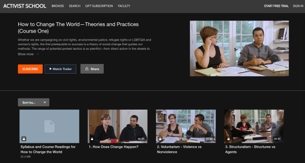 활동가학교(Activist School)는 활동가들을 위해 활동가들이 만들고, 활동가들이 가르치는 온라인 학교다. 활동가학교는 더 나은 활동가가 되는데 필요한 사회변화를 위한 행동주의를 깊게 이해하는데 도움을 주고, 일반적인 사회운동의 접근 방식을 한 발 물러서 되돌아보는 시간을 제공한다. 교육 동영상은 바드 칼리지와 UCLA와 같은 대학에서 촬영된다. 회원으로 가입하면 모든 교육 과정에 접근할 수 있다. 가입 후 14일 동안은 무료이고, 언제든지... Continue Reading →